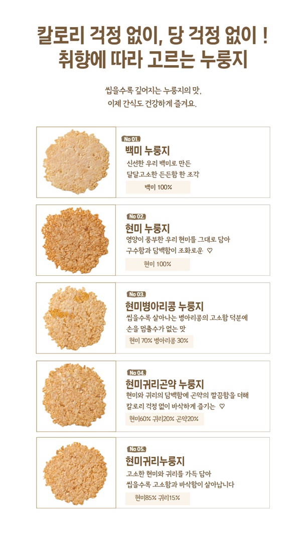 바삭한 현미누룽지 스낵 / 백미 귀리 곤약 병아리콩 다양한 맛